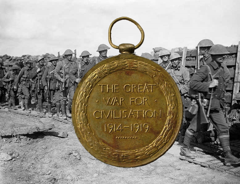 The inscription on the Victory Medal, awarded to the armed servicemen of all the victor nations who were still alive at the end of the war reads simply “The Great War for Civilisation,” a claim which seems difficult to justify. And when I say were still alive, it is because the figures are staggering. They are also uncertain, because of the nature of the war, in which bodies were blown to pieces or buried by shell fire. For example, the 2014 Annual Report of the Commonwealth War Graves Commission states that there are 187,744 unidentified Commonwealth war burials from the First World War.[1] Yes, that’s right: nearly 188,000 bodies still unidentified a century after the outbreak of that war. And that’s only the ones from the British Empire. In Bertrand Tavernier’s wonderful film la vie et rien d’autre/Life and nothing but a general tells the officer in charge of trying to identify forty thousand anonymous corpses to select one to become the unknown soldier buried under the Arc de Triomphe in Paris, but to be careful not to get a British, German, or American one by mistake.[2]