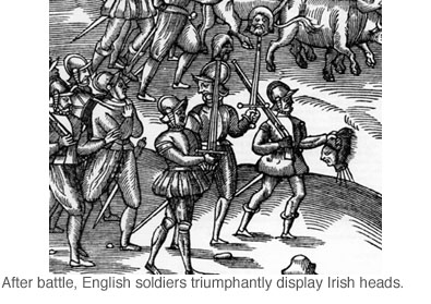 Brainwashed by this anti-Irish propaganda the soldiers hunted down any resistance to English rule. In 1594 a revolt occurred in Ulster in the north of Ireland and Sir Arthur Chichester sent this dispatch about his pursuit of Irish rebels at Lough Neagh: